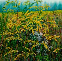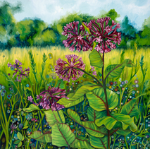 Other paintings reflect sites that are now wildflower fields but were once a rural airport, a colonial battleground, or the encampment of an 18th-century army. These works honor the layered histories and celebrate their present-day role as sanctuaries for wildflowers cherished by pollinators and those knowledgeable in herbal lore.